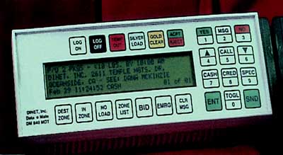 The DATA MATE 840 unit itself is compact, durable and resistant to dirt, moisture and shock. It has a keyboard for driver data entry and a screen display for driver instructions and dispatch messages. Custom keyboards are available to meet specific customer requirements. Each terminal comes with a six-inch adjustable mount and the necessary radio interface and power cables. An RS-232 input/output port is standard for optional printer, GPS receiver, credit card and bar code reader. An application software package for the dispatch central computer is also included.